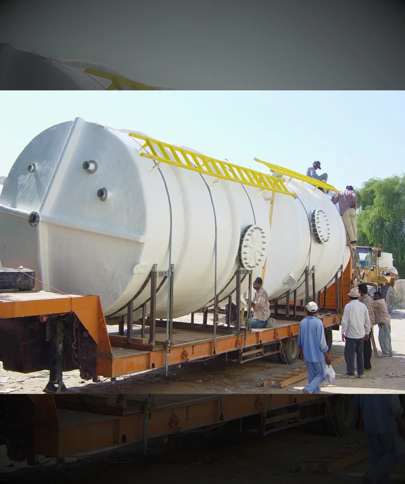 Corrosion-resistant fiberglass chemical storage tanks built for safe handling of acids, alkalis, and hazardous liquids.