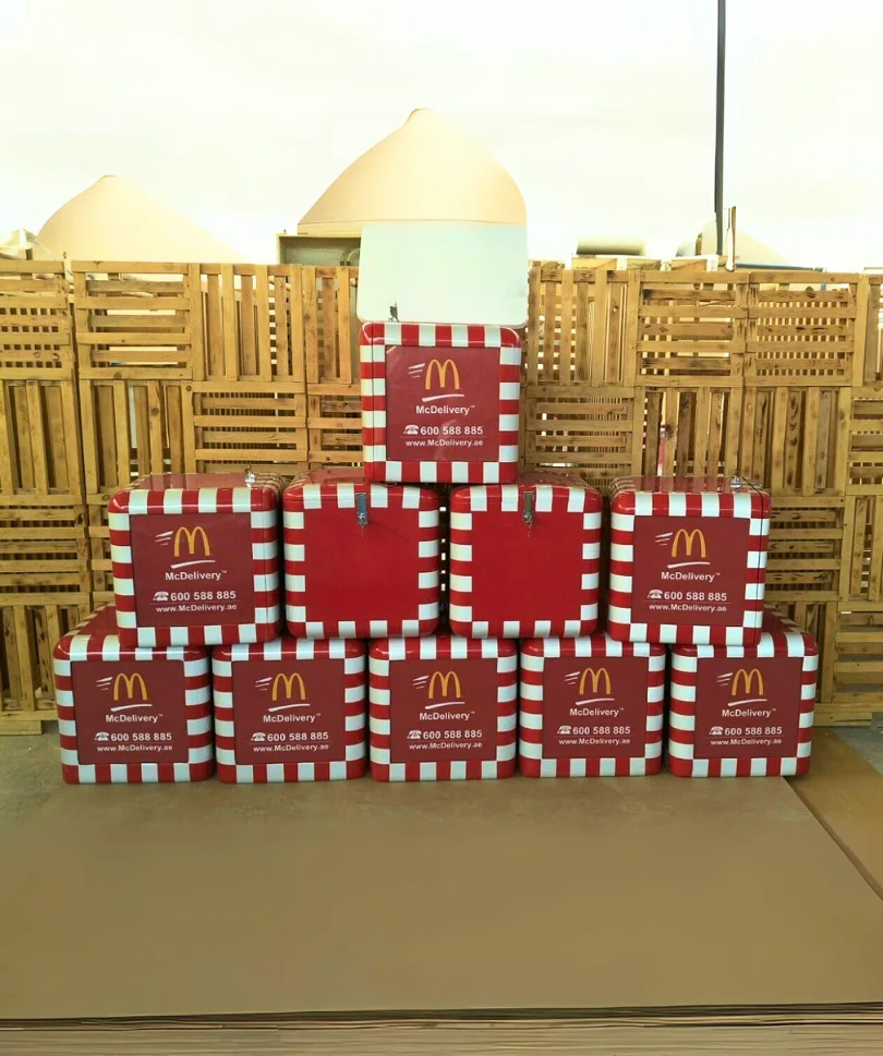 Weather-resistant fiberglass delivery boxes designed for motorcycles, ensuring safe, hygienic, and long-lasting transport of food and goods.