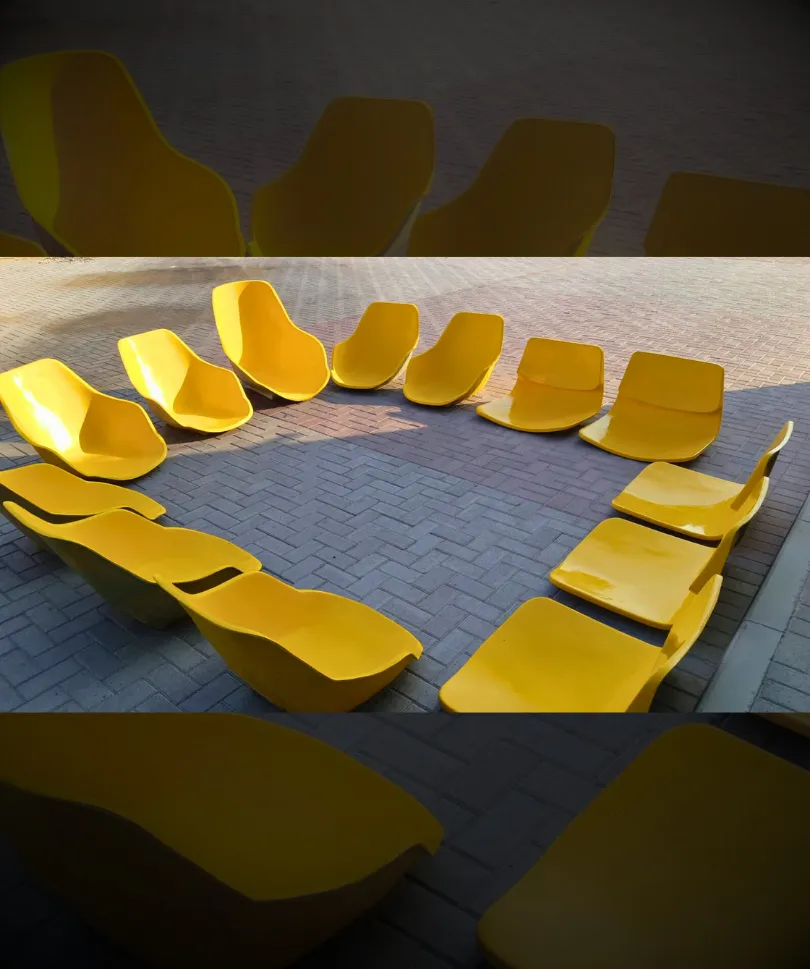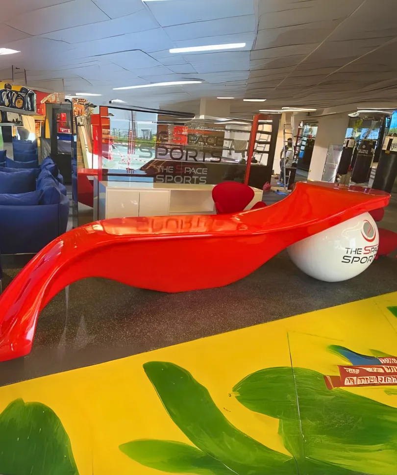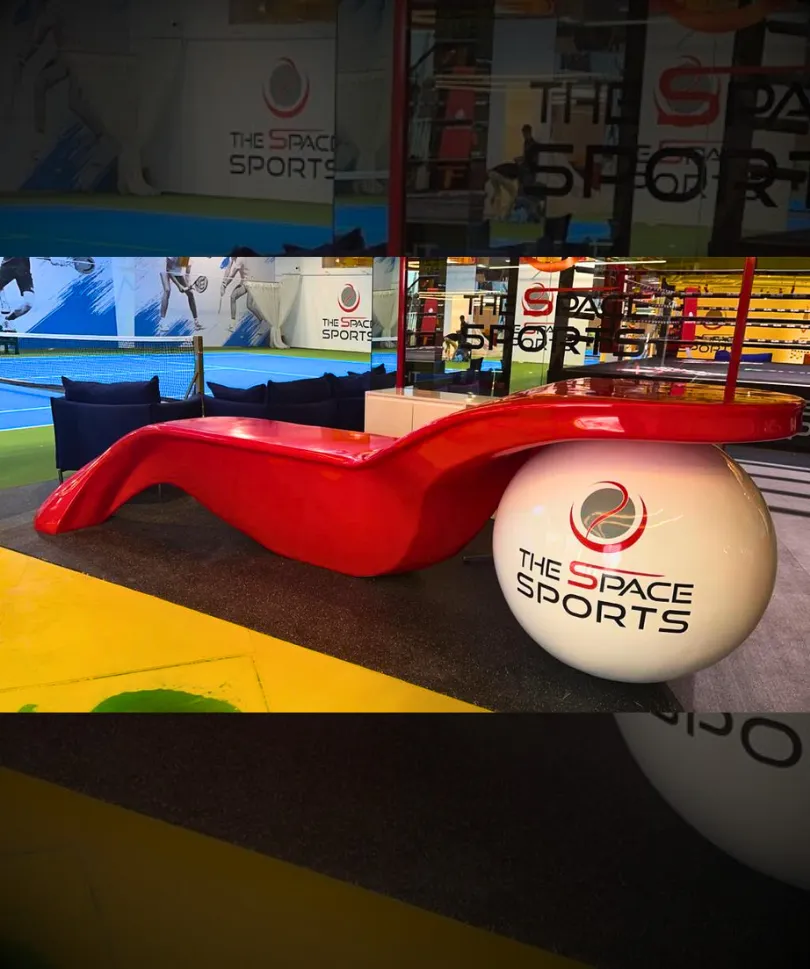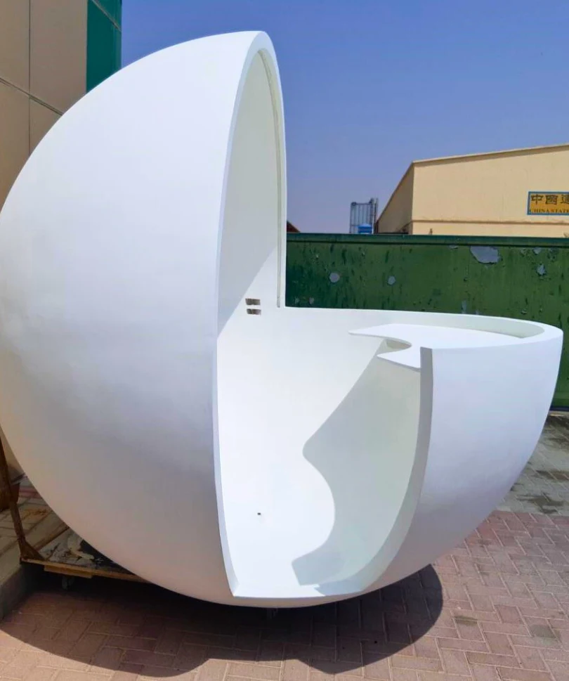 Custom fiberglass desks and seating elements offering strength, style, and unique design versatility.