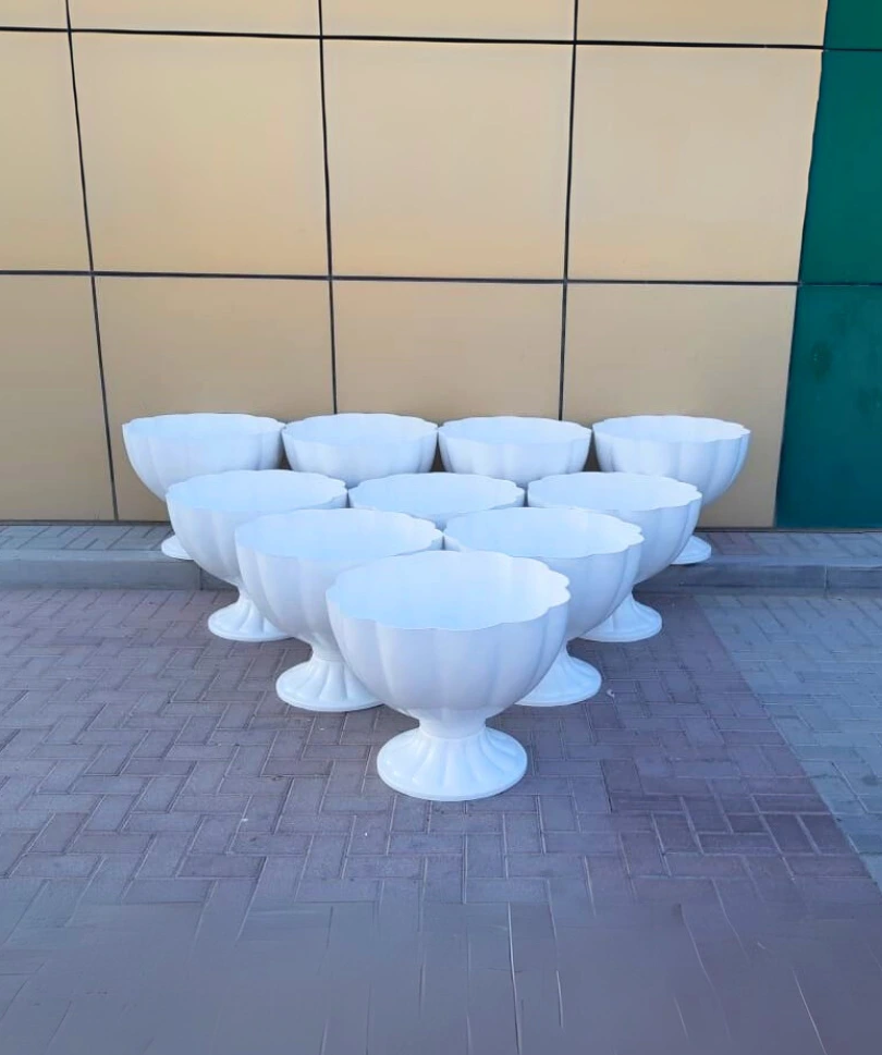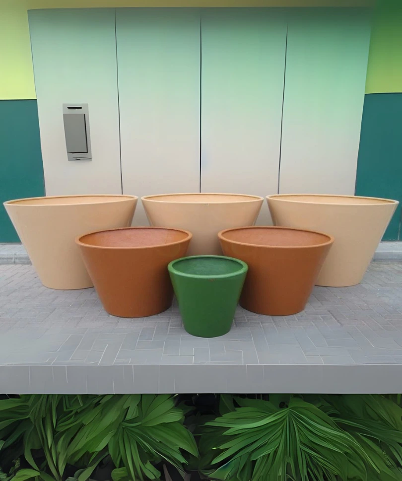 Durable fiberglass flower pots combining lightweight strength with modern landscaping aesthetics, used by Sharjah Municipality.