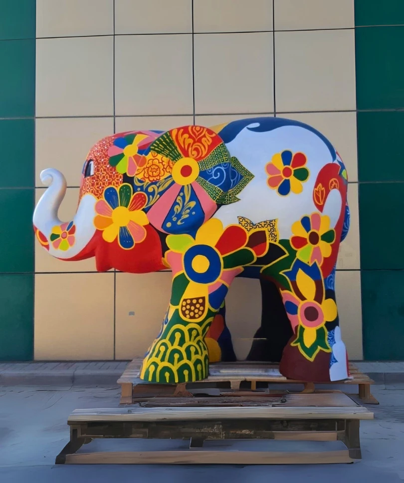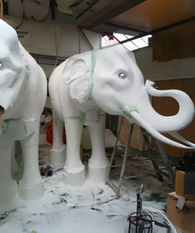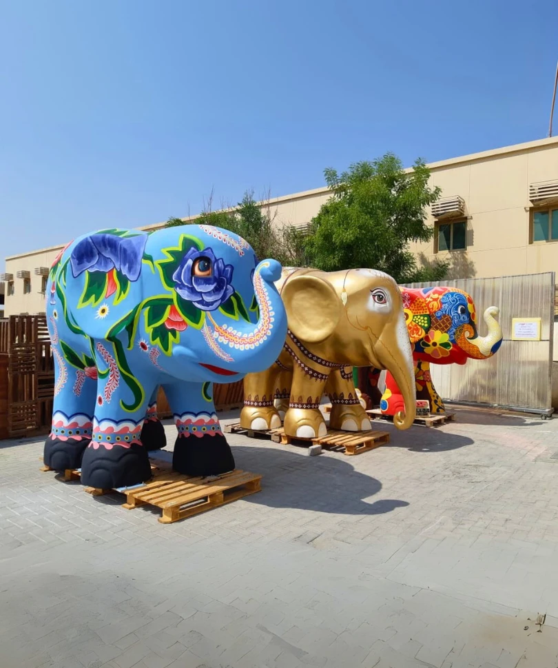 Sturdy fiberglass elephant sculptures designed for outdoor and indoor displays, combining lifelike detail with durable GRP material.