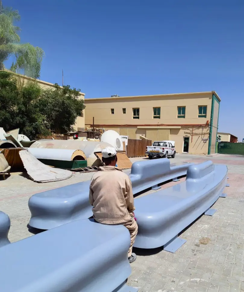 Contemporary fiberglass seating benches crafted for public spaces, parks, and modern landscape design.